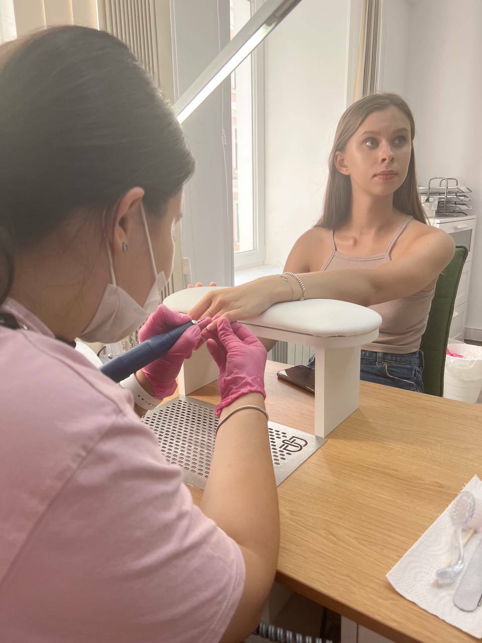 Вторая моя гордость - это удобно оборудованные рабочие места и отдельная комната для отдыха сотрудников. Как мастер, я понимаю и разделяю все ваши неудобства в работе. Поэтому оборудовала рабочие зоны так, чтобы во всем был комфорт и минимум вреда для вашего здоровья: удобные ортопедические стулья для мастеров, мощная встроенная вытяжка, лампы освещения с обеих сторон и тд. Я не экономлю на расходниках, а при выборе материалов всегда советуюсь с девчонками, что нам закупить, чтобы им удобно было этим работать.